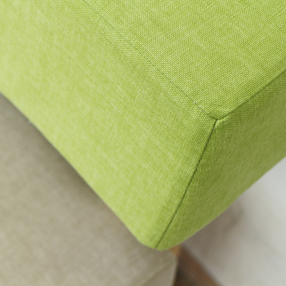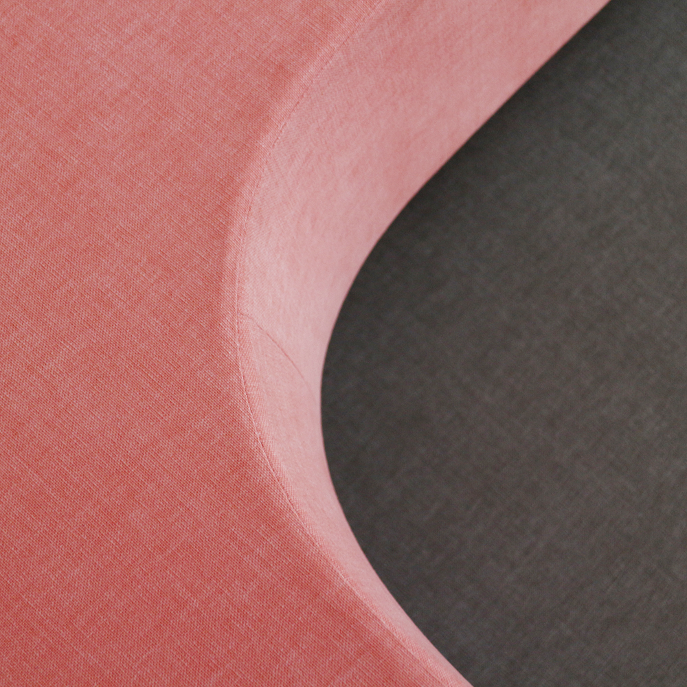 私が実際に入社して、初めて触れてみた生地が、このピーチスキンの生地でした。本当に桃の皮を使っているのではないかと錯覚するほどの質感でした。生地の見た目は上品で、カラーは優しい色合いが揃っており、お気に入りの生地になりました。座りながらずっと座面を触っていたくなるような、クセになる肌触りです。 |