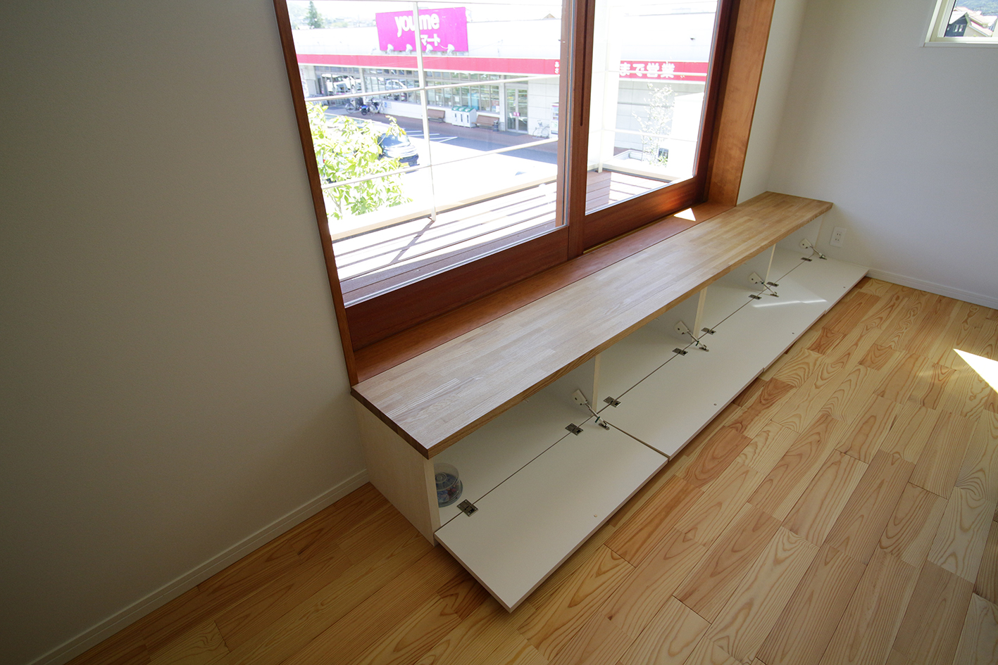 ンダ手前のベンチは収納付なので、普段使うモノを収納できます。この