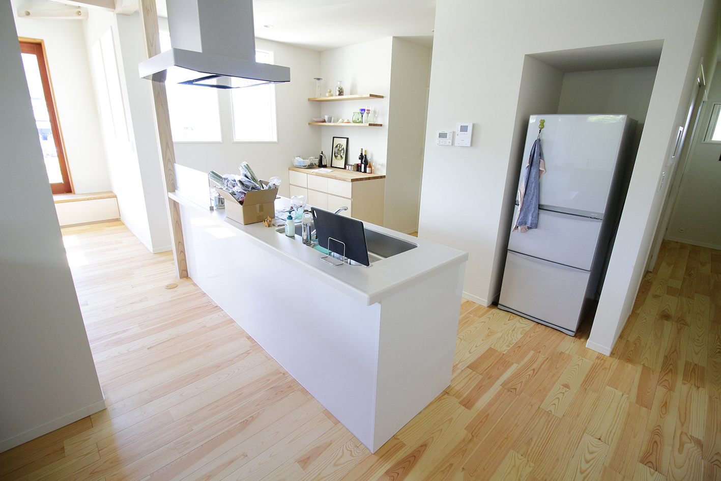 キッチンは独立しており、周りにスペースを広く設けているのでスト