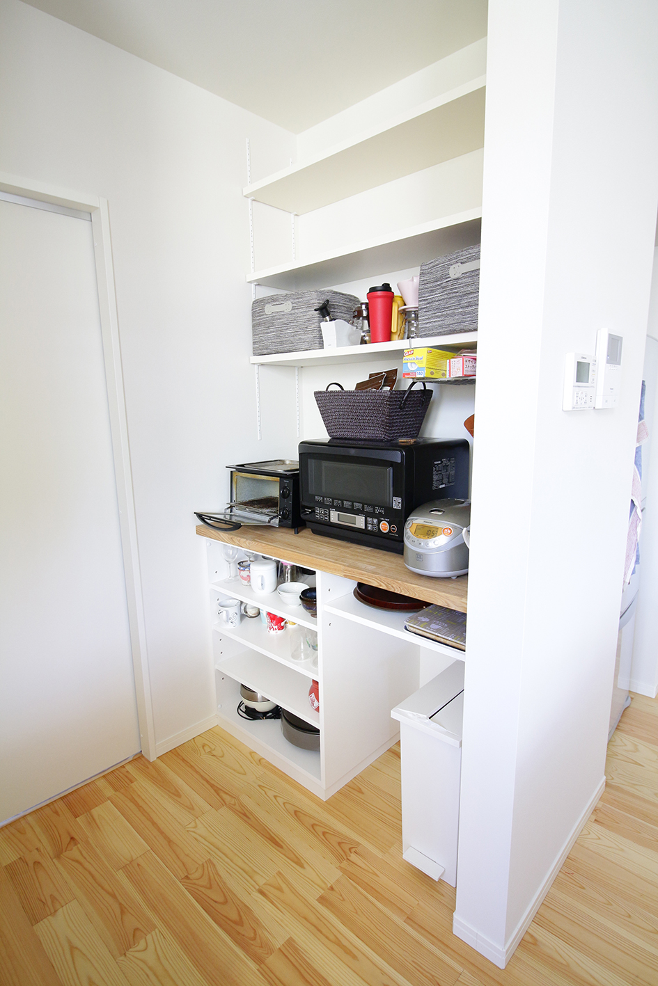レスなく動けます。収納棚も容量たっぷりでキッチンをいつも綺麗に