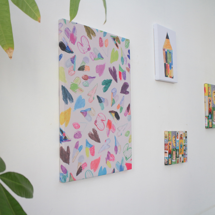 ちびっ子が描いた可愛らしいハートがファブリックボードになりました。