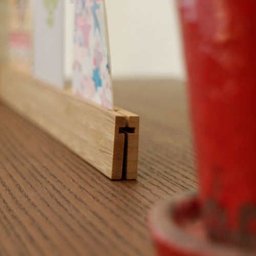 竹の無垢材を使った真っ直ぐな木目が美しい壁掛け用の手ぬぐい&ポストカードフォルダーです。竹材に磁石を埋め込み、布ヒンジで繋いでいるのでパチンと心地よく手ぬぐいを挟めます。手ぬぐいはもちろんポストカーや写真、ポスターや子どもが描いた作品など様々なサイズのメディアを手軽に気軽に飾ることができます。 また卓上でもご使用いただけますので仕事場や玄関などでも活躍しそうですね。ポストカードサイズなら縦型で3枚が挟めます。 この商品は無塗装ですが、オイル塗装をすると使い込むほどに飴色に変化、光沢が出て味が出ますので、DIYでお試しいただければと思います。