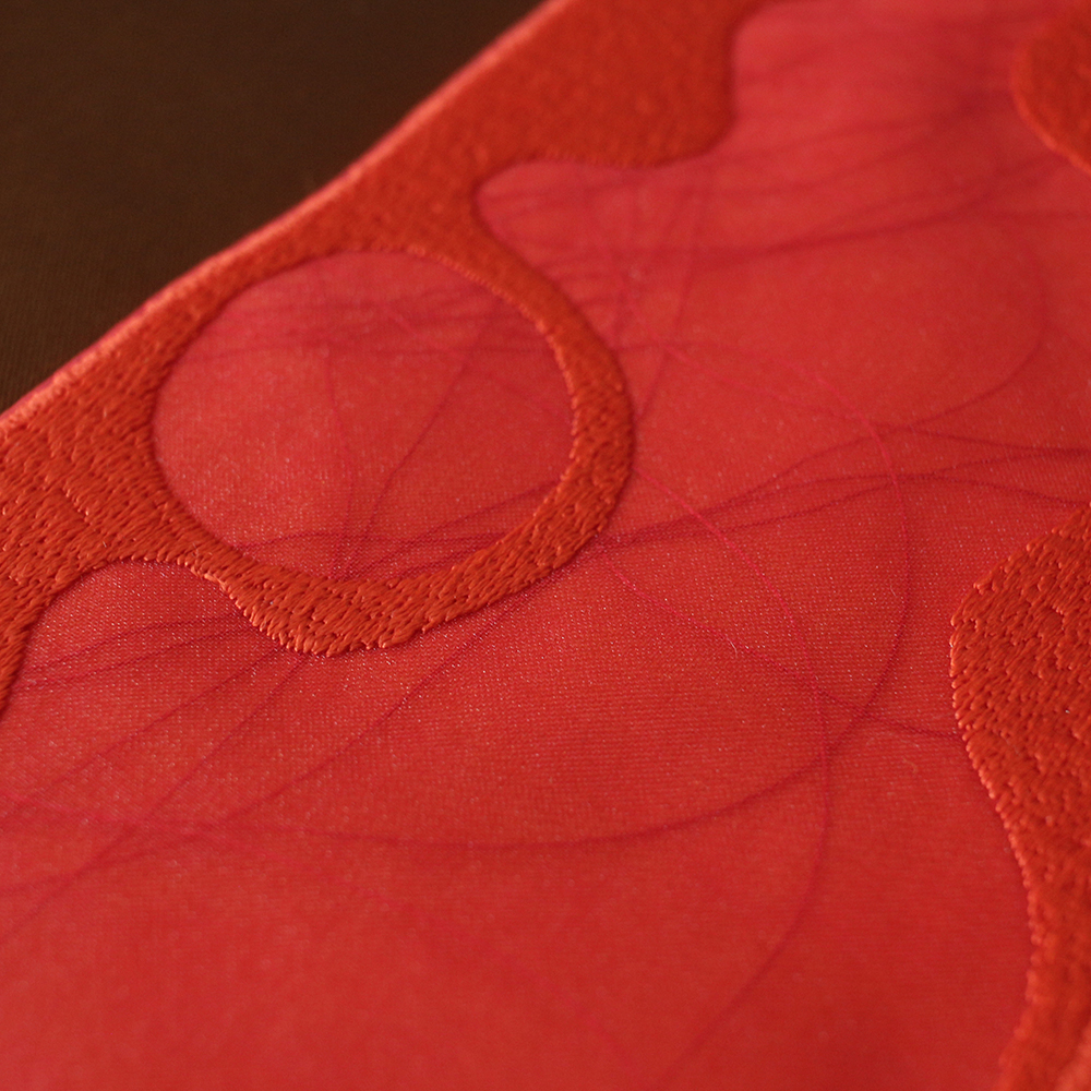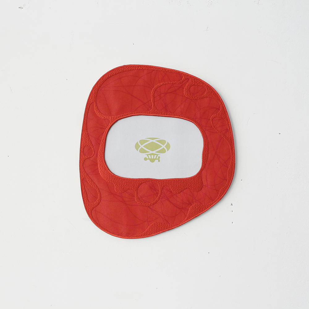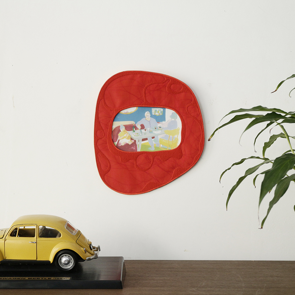 四角いフレームではなく、有機的なフォルムをした刺繍フレーム部分が柔らかい雰囲気になり、空間に調和します。